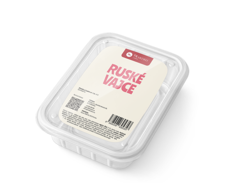 U nás si pochutnáte na tradičnom ruskom vajci, pripravenom z vareného vajca podávaného s krémovou majonézovou zmesou, kvalitnou kuracou salámou, zemiakmi, hráškom a sterilizovanou zeleninou. Poctivá receptúra a klasická chuť, ktorú poznáte z lahôdok.